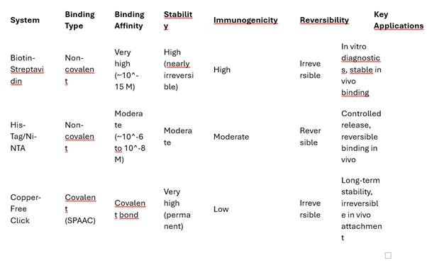 Technical Considerations: Although biotin-streptavidin binding is extremely strong, streptavidin itself is immunogenic and may trigger an immune response in vivo. Alternatives like monomeric streptavidin or biotin derivatives are explored to reduce immunogenicity.