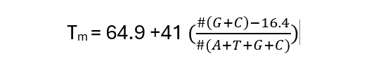 Where Tm is in degrees Celsius, and #(G+C) and #(A+T+G+C) represent the total number of guanine-cytosine pairs and total nucleotides, respectively.